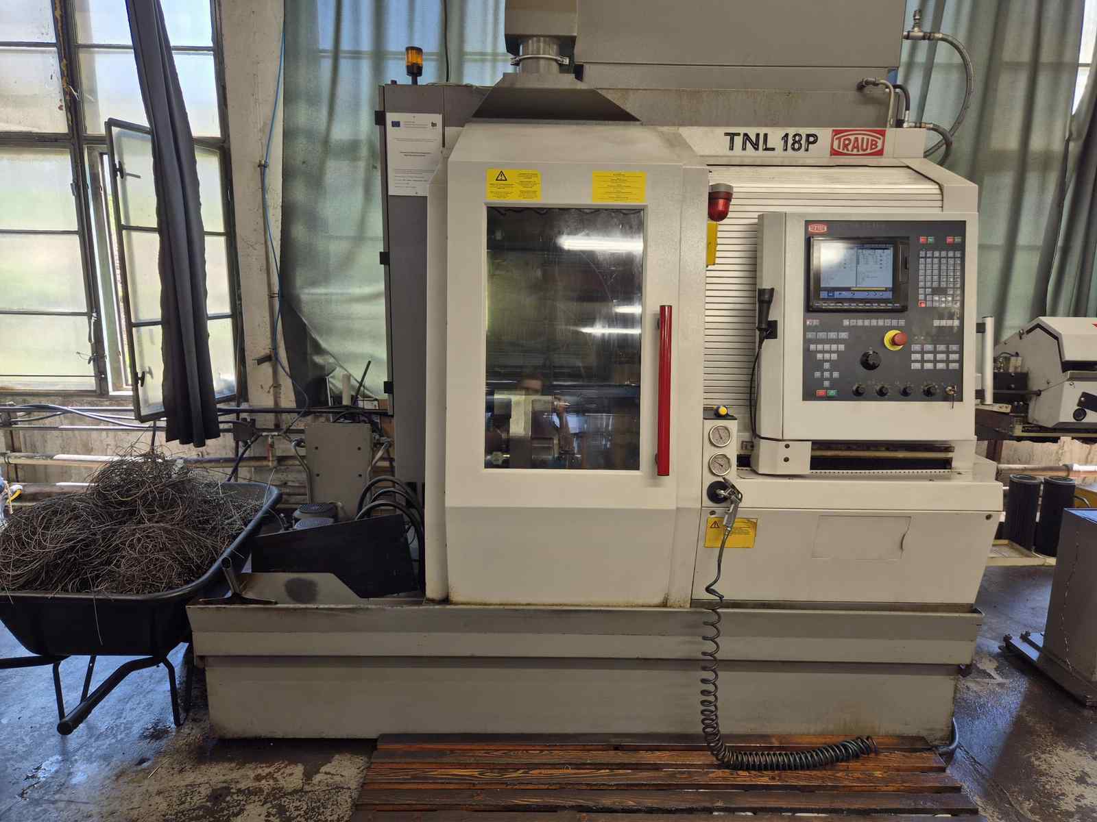 Soustruh je v dobrém tech. stavu, pod proudem, s možností odzkoušení. Řídicí systém TRAUB TX8i-p
